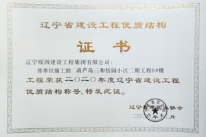 “葫蘆島三和恬園小區(qū)二期工程6#樓”榮獲2020年度遼寧省建設(shè)工程優(yōu)質(zhì)結(jié)構(gòu)稱(chēng)號(hào)