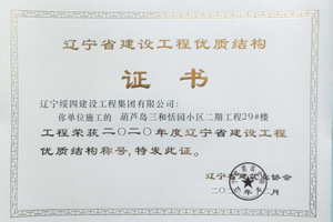 “葫蘆島三和恬園小區(qū)二期工程15#樓”榮獲2020年度遼寧省建設(shè)工程優(yōu)質(zhì)結(jié)構(gòu)稱號
