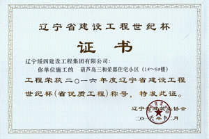 “葫蘆島三和榮郡住宅小區(qū)1-8#樓”榮獲2016年度遼寧省建設(shè)工程世紀(jì)杯稱(chēng)號(hào)