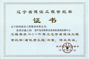 “葫蘆島市特種設(shè)備檢驗(yàn)基地檢測(cè)中心”榮獲2016年度遼寧省建設(shè)工程世紀(jì)杯稱(chēng)號(hào)