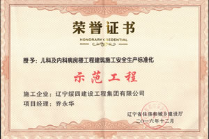 兒科及內(nèi)科病房標(biāo)準(zhǔn)化工程榮譽(yù)證書(shū)