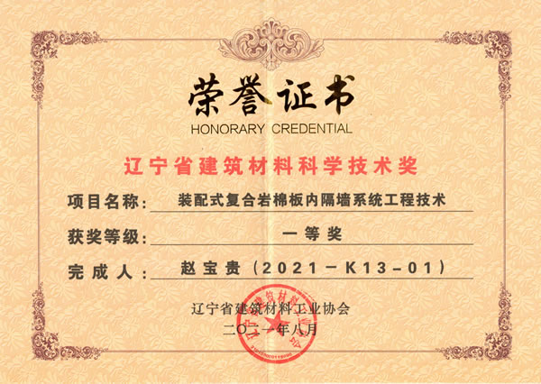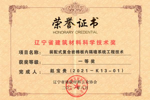 2021年度遼寧省建筑材料科學(xué)技術(shù)一等獎