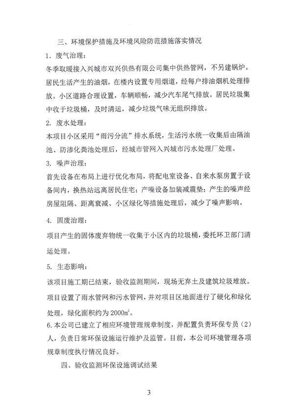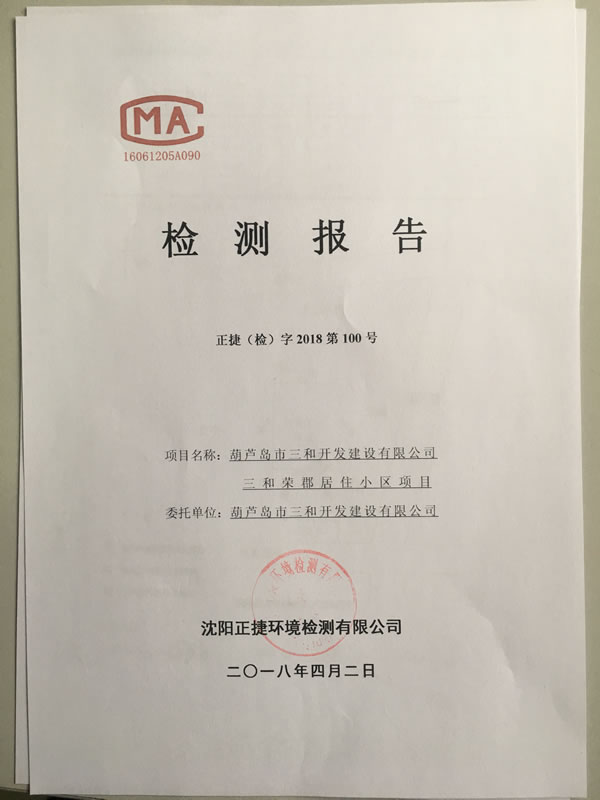 。14)沈陽(yáng)正捷環(huán)境檢測(cè)有限公司《葫蘆島市三和開(kāi)發(fā)建設(shè)有限公司三和榮郡居住小區(qū)項(xiàng)目環(huán)保設(shè)施竣工驗(yàn)收檢測(cè)報(bào)告》,2018年4月2日。