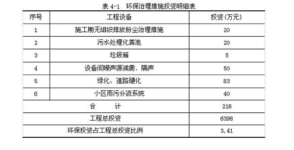 環(huán)保治理措施投資明細(xì)見(jiàn)表4-1。