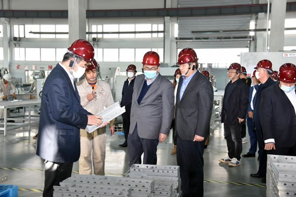 省住建廳領(lǐng)導(dǎo)、省建協(xié)領(lǐng)導(dǎo)及與會代表參觀1#車間-鋁模板生產(chǎn)車間