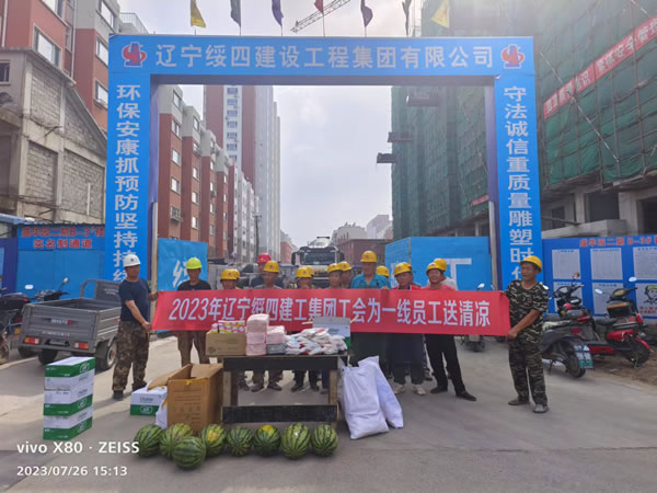 7月25日—28日,遼寧綏四建設(shè)工程集團(tuán)有限公司開展送清涼活動(dòng)。集團(tuán)董事長(zhǎng)趙寶貴親自布置,黨支部書記張艷舫、工會(huì)主席薛桂枝、所屬企業(yè)相關(guān)負(fù)責(zé)人房建、喬揚(yáng)、王剛分別帶隊(duì),慰問高溫下堅(jiān)守在一線的員工們。