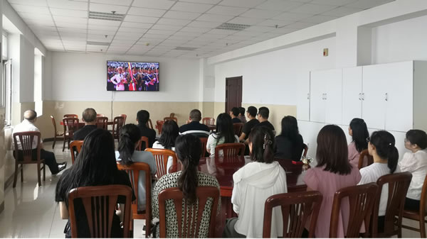 當(dāng)天上午,集團(tuán)事長(zhǎng)趙寶貴及總部員工們?cè)缭绲鼐奂跁?huì)議室,懷著崇敬和激動(dòng)的心情等待閱兵式的開(kāi)始。9時(shí)許,閱兵儀式正式開(kāi)始,大家整齊就座,認(rèn)真觀看每一個(gè)環(huán)節(jié),看著整齊劃一的方隊(duì)、先進(jìn)的武器裝備依次通過(guò)天安門廣場(chǎng),員工們的臉上洋溢著自豪與驕傲之情。