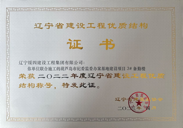葫蘆島市紀委監(jiān)委辦案基地建設(shè)項目 3# 備勤樓榮獲2022年度遼寧省建設(shè)工程優(yōu)質(zhì)結(jié)構(gòu)稱號