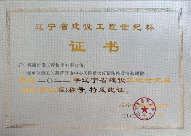 葫蘆島市中心醫(yī)院重大疫情防控救治基地樓榮獲 2022年度遼寧省建設(shè)工程世紀(jì)杯(省優(yōu)質(zhì)工程)稱(chēng)號(hào)