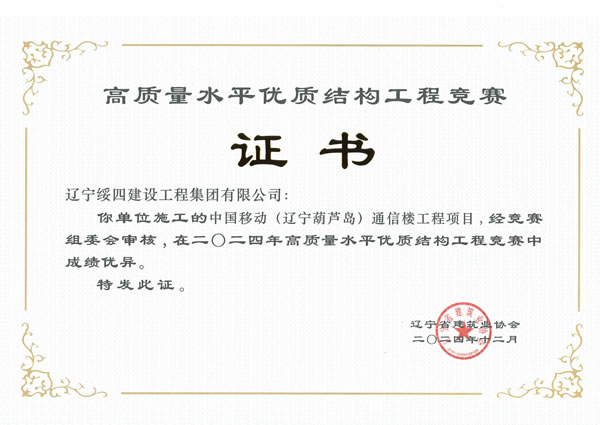 中國(guó)移動(dòng)(遼寧葫蘆島)通信工程項(xiàng)目被評(píng)為2024年高質(zhì)量水平優(yōu)質(zhì)結(jié)構(gòu)工程