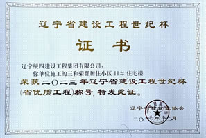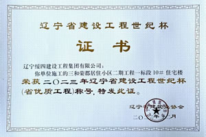 三和榮郡居住小區(qū)二期工程一標(biāo)段10#住宅樓 榮獲2023年遼寧省建設(shè)工程世紀杯(省優(yōu)質(zhì)工程)稱號