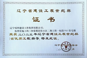 三和榮郡居住小區(qū)二期工程一標(biāo)段9#住宅樓 榮獲2023年遼寧省建設(shè)工程世紀杯(省優(yōu)質(zhì)工程)稱號