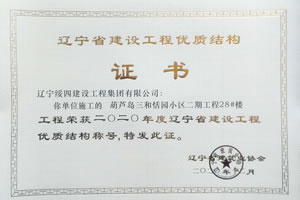 “葫蘆島三和恬園小區(qū)二期工程28#樓”榮獲2020年度遼寧省建設(shè)工程優(yōu)質(zhì)結(jié)構(gòu)稱(chēng)號(hào)