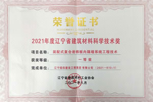 2021年度遼寧省建筑材料科學(xué)技術(shù)一等獎