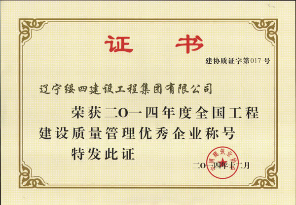 東北三省工程質(zhì)量管理優(yōu)秀施工企業(yè)
