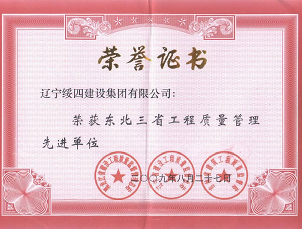 東北三省工程質(zhì)量管理先進企業(yè)