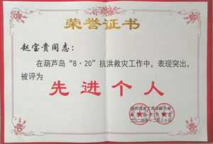 嘉獎:趙寶貴同志在葫蘆島市“8·20”抗洪救災(zāi)和災(zāi)后重建工作中做出突出貢獻(xiàn)
