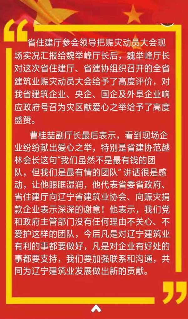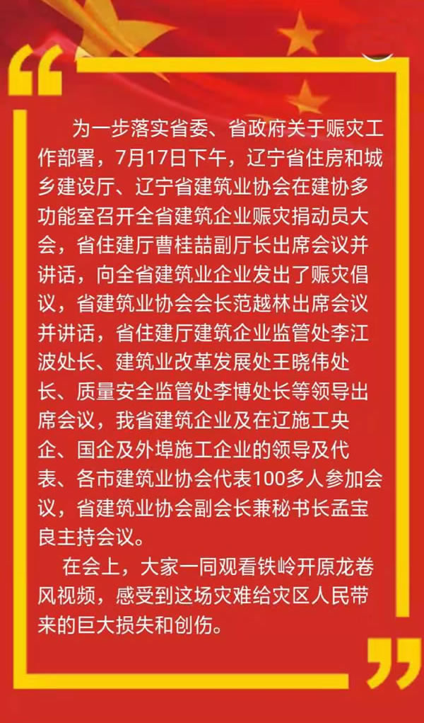 全省建筑業(yè)企業(yè)賑災動員大會在沈陽隆重召開